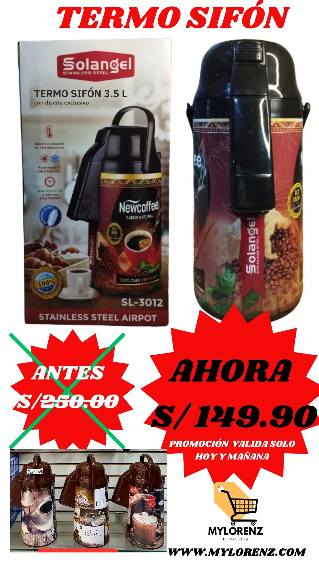 Termo Sifón Acero Inoxidable 3.5L. Solangel MODELO SL - 3012